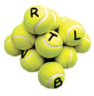 Teams are given 75 tennis balls with the letters of the alphabet on them. One person from the