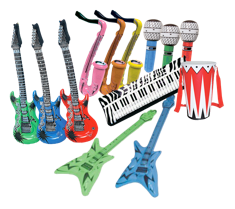 Get the band together for pictures at your Rock and Roll party! Inflatable microphones, electric guitars, electric keyboards and drum. Create that 1970’s rock and roll party theme and dance the night away to your favorite rock n roll songs with this blow up rock and roll party kit.
