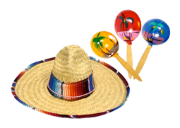 Ole! Our mexican party kit is sure to be a hit at your next fiesta. Maracas and sombreros round out this festive party kit.